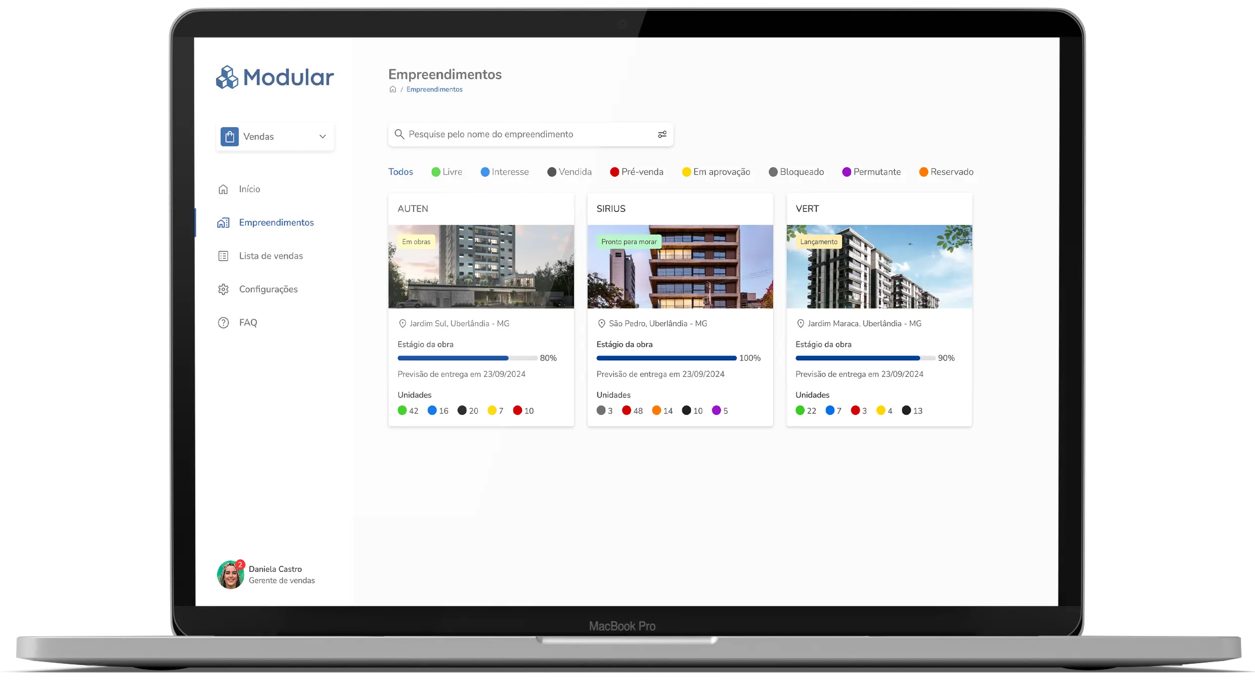 Solução para registro das vendas com proposta, contrato e espelho de vendas. No módulo Vendas é possível: